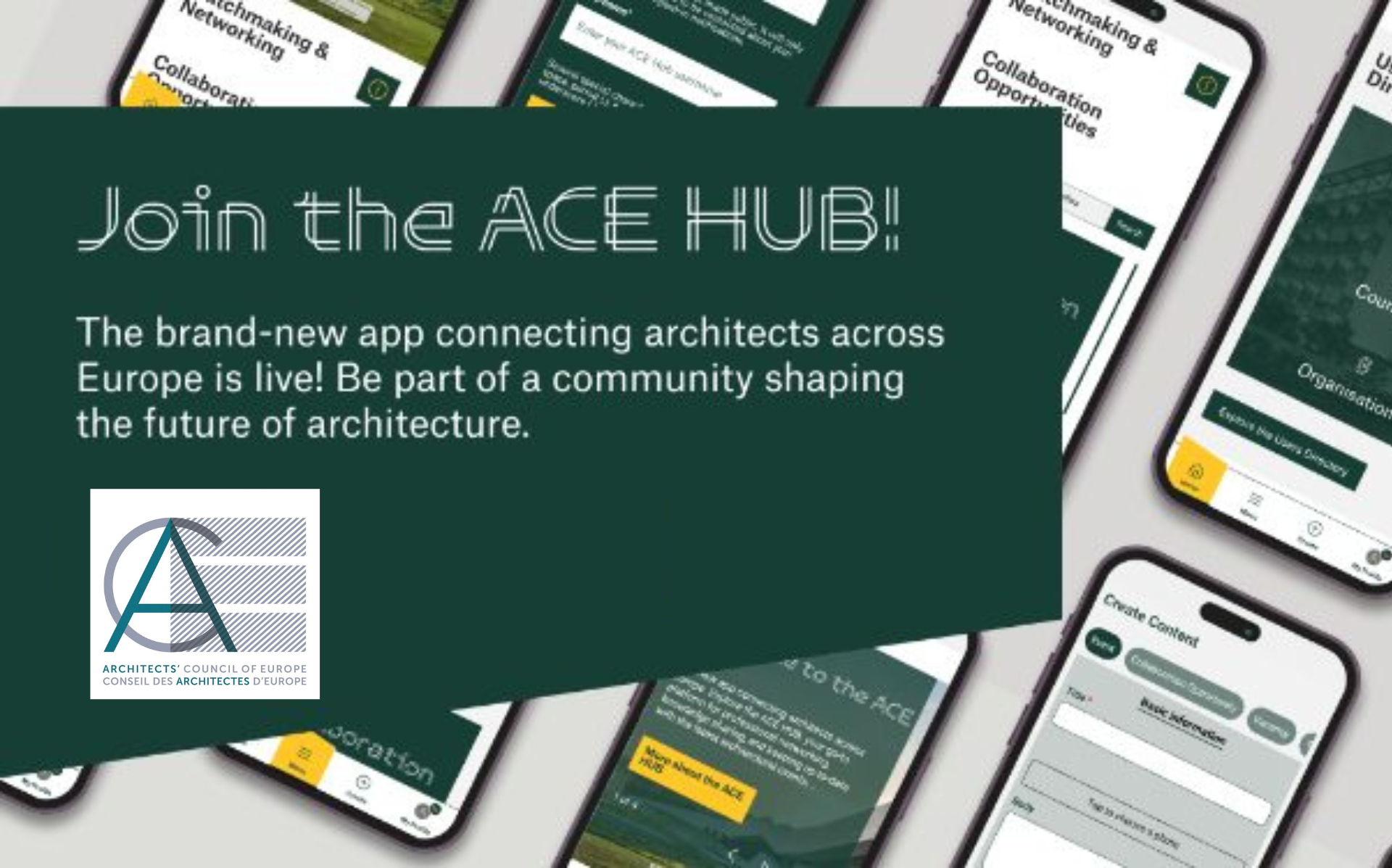 Το Συμβούλιο Αρχιτεκτόνων της Ευρώπης (Architects’ Council of Europe – ACE) παρουσίασε πρόσφατα την εφαρμογή ACE HUB, μια καινοτόμο πλατφόρμα που στοχεύει στη σύνδεση και συνεργασία των αρχιτεκτόνων σε όλη την Ευρώπη. Η εφαρμογή είναι διαθέσιμη για συσκευές Android και iOS, προσφέροντας μια σειρά από λειτουργίες που ενισχύουν την επαγγελματική δικτύωση και την ανταλλαγή γνώσεων στον τομέα της αρχιτεκτονικής.